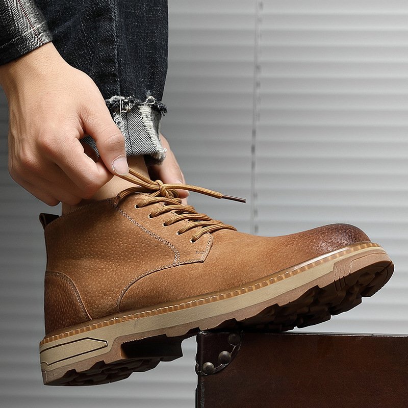 Men's boots 2022 winter new rhubarb boots men's leather Martin boots men's high-top leather shoes tooling shoes men's shoes trend